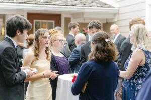 Etiquette training includes lessons in traditional and contemporary manners, including eye contact, posture, proper greetings and introductions, the art of conversation and graceful exits, how to escort a lady, dining manners, making a toast, and being present by putting away phones.